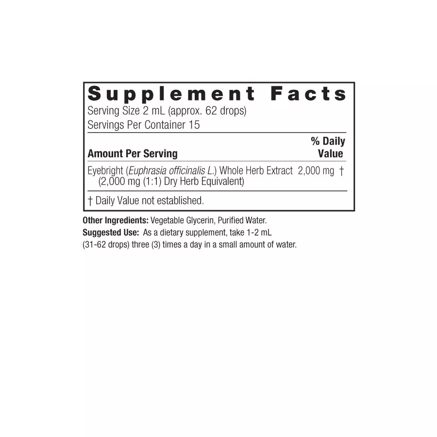 Other ingredients :Euphrasia extract 1:1 (dry plant equivalent 2000mg Euphrasia Officinalis), vegetable glycerin, purified water