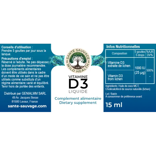 Discover our vegan Vitamin D3 drops, derived from lichen and diluted in organic virgin MCT coconut oil. Each 5 drops provides 1000 IU (25 µg) to support your bones, muscles and immunity, with a 100% plant-based, additive-free formula.